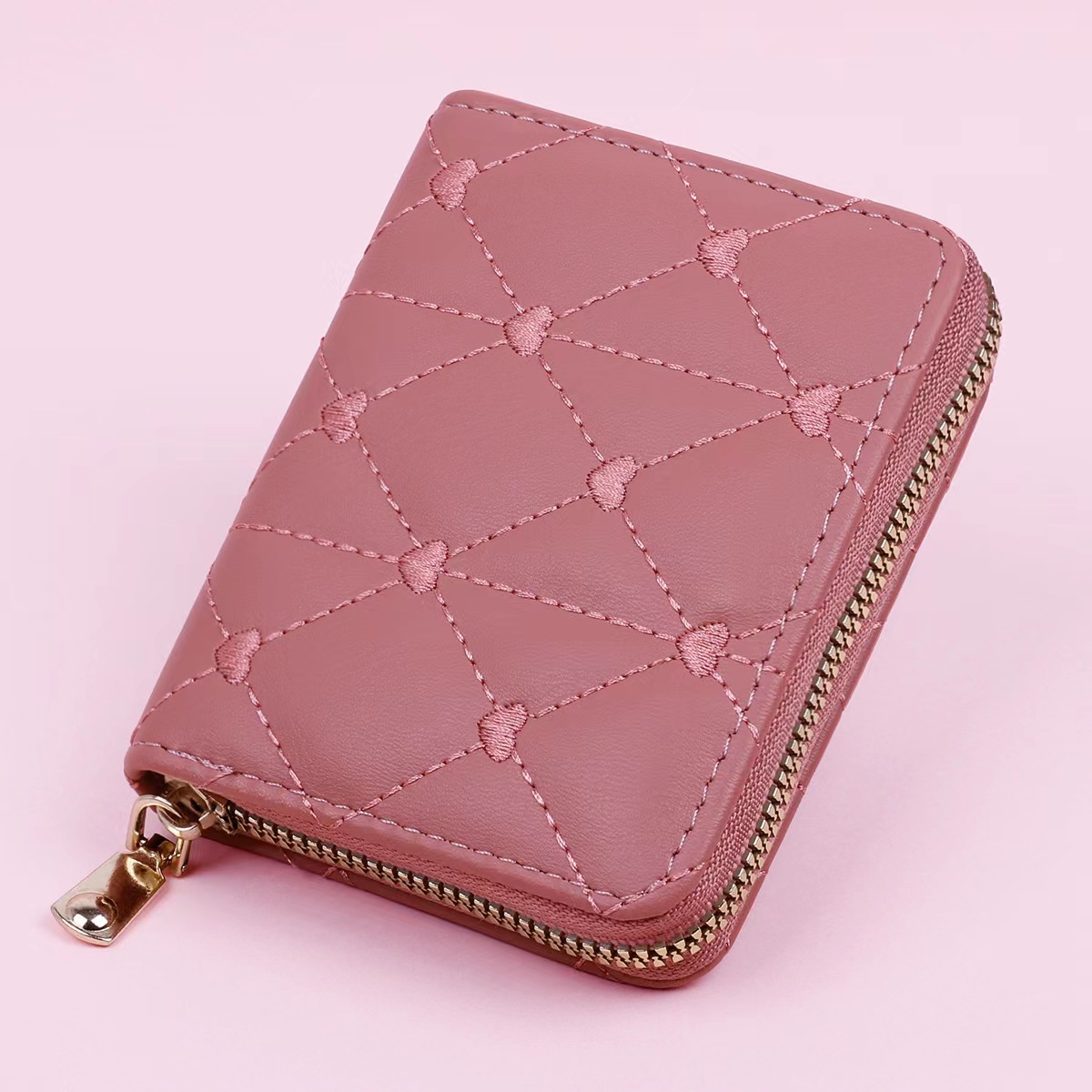New lady purse PU card clip card cover cute embroidered love purse zipper wallet